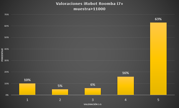 El irobot Roomba i7+ tiene una distribución de opiniones propia de un producto de calidad. Con más de un 60% de valoraciones de 5 estrellas. Veamos qué destacan los compradores de este producto en sus reseñas: