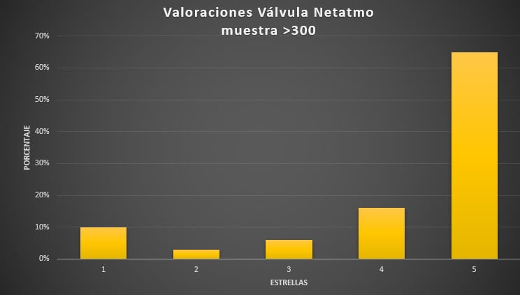 En lo referente a valoraciones de los usuarios de la válvula Netatmo, hay que destacar su alta puntuación, siendo pocas las valoraciones negativas, y gran parte de ellas por falta de conocimiento del funcionamiento de la válvula termostática.