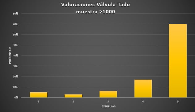 Las opiniones sobre la válvula Tado son mayoritariamente positivas, como puede apreciarse en el gráfico, estando a la cabeza en cuanto a valoración se refiere comparado con el resto de cabezales termostáticos de su misma gama. A continuación, te presentamos un resumen de todas las opiniones hasta el momento recogidas de plataformas tan representativas como Amazon y Google Play.